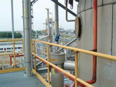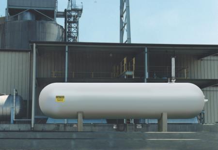 汽化氨用于催化和非催化还原系统的排放控制。液氨被注入烟气流中,起还原剂的作用。它也用于提高除尘器控制微粒物的效率。纯氨储存在一个额定压力250到300 psig的压力容器中。氨水(含70%到80%的水)储存在一个额定压力25到30 psig的罐中。氨水的储存量是纯氨的三到四倍。
